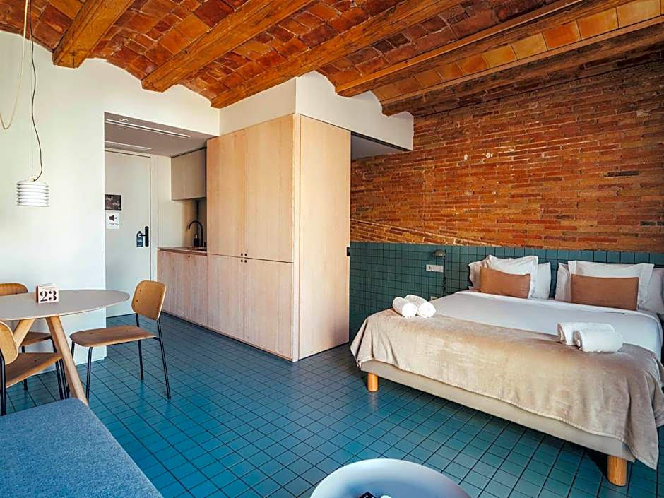 The Boutique Apartments 23 Barcelona offers Studio Apartments that are non-smoking and have a size of 323 sqft. These apartments can accommodate 2 adults and do not have any children's beds. The rooms feature 1 Sofa Bed and 1 Queen size bed.