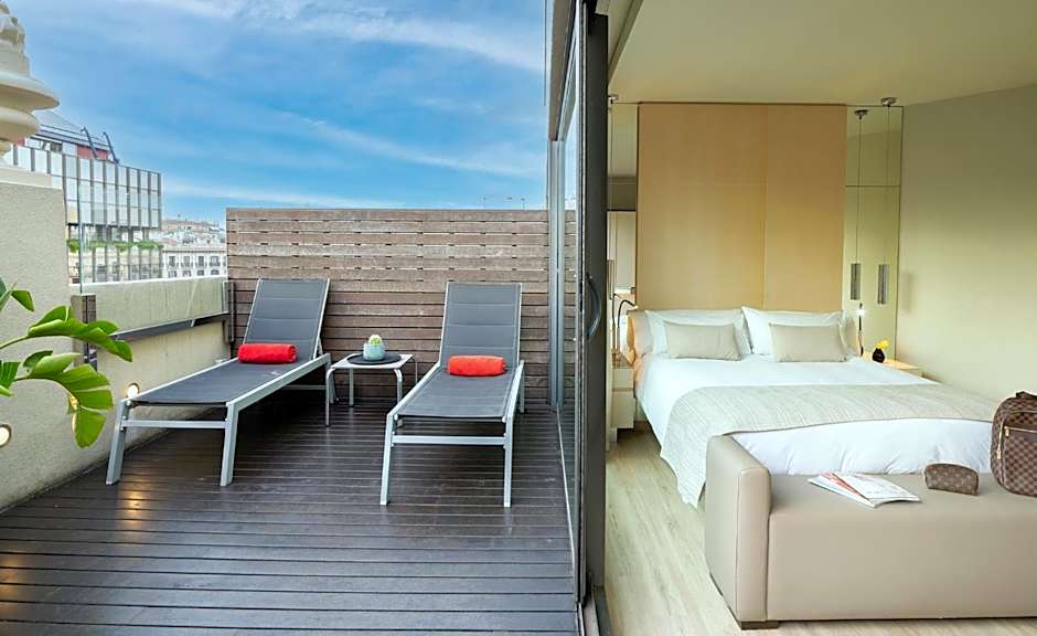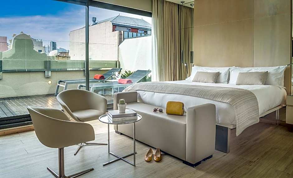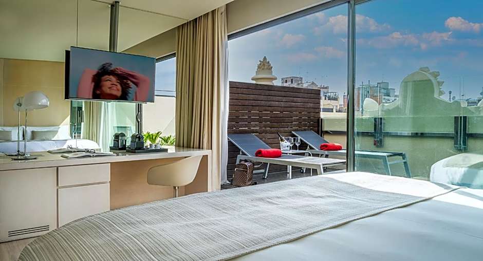 Leisure zones include a seasonal rooftop outdoor pool with a plunge and a view, plus a spa tub and a hot tub to unwind after a day of exploring. A sun deck, terrace, and beach chairs/loungers provide sunny spots to soak up the Barcelona atmosphere, and a stylish bar rounds out the evenings.