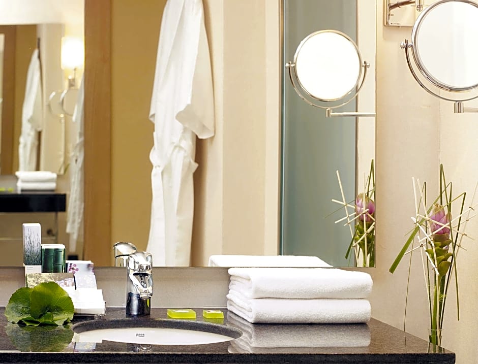 Providing free toiletries and bathrobes, this double room includes a private bathroom with a bath, a shower and a hairdryer. The spacious air-conditioned double room provides a flat-screen TV with streaming services, soundproof walls, a coffee machine, a wardrobe as well as city views.