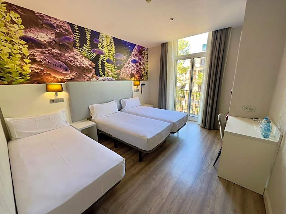 Amazing location literally across Las Ramblas (street) from La Boqueria Market, cute little balcony to overlook everything/ everyone. Very modern and well-equipped rooms, super friendly english-speaking staff (especially David, originally from Bolivia, who offered me some great food tips!), great price for the location, especially.