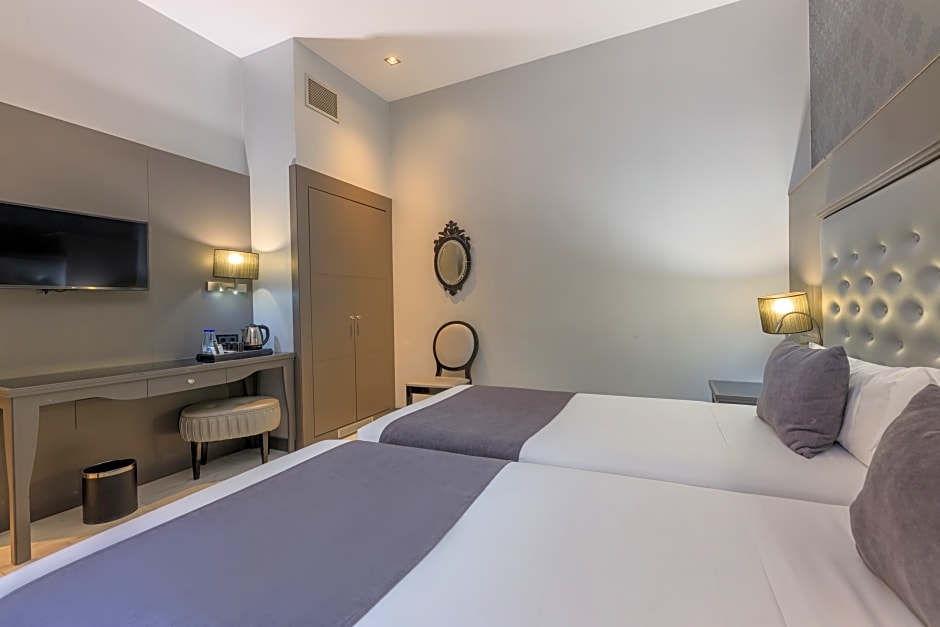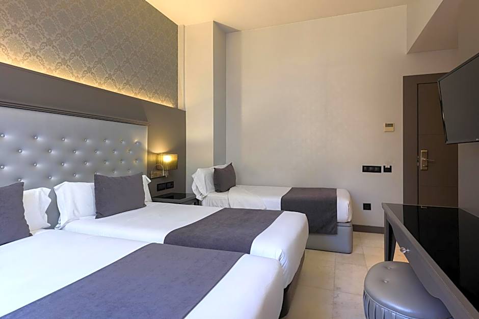 The Hotel Ciutadella Barcelona offers Double or Twin Rooms that can accommodate 2 adults and have 2 Twin beds, with a room size of 161 sqft. These rooms do not allow smoking. Additionally, there are Double or Twin Rooms with Extra Bed available, which can accommodate 3 adults and 1 child. These rooms have 3 Twin beds, 1 Double bed, and 1 Sofa Bed.