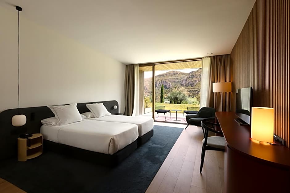 The spacious twin/double room features air conditioning, soundproof walls, a terrace with garden views as well as a private bathroom boasting a bath.