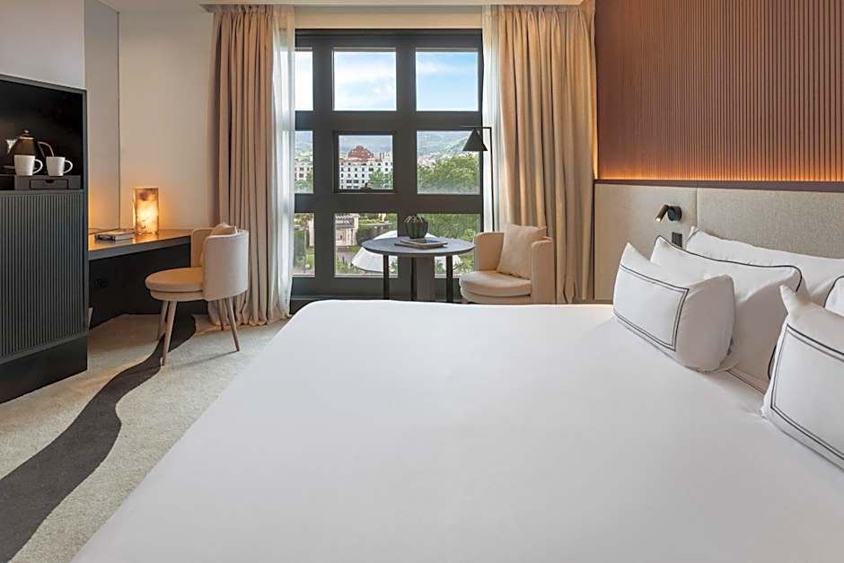 Located in Bilbao, this 5-star haven pairs stylish comfort with a lively on-site dining scene. Sumendi and Bribone, two modern restaurants, serve Spanish and Local flavors for a relaxed meal any time of day. Outdoor enthusiasts can soak up the sun by the heated outdoor pool with a view, while the sun deck and terrace provide perfect spots to unwind after a day of exploring the city. Free WiFi and air conditioning keep every stay comfortable, and pets are welcome on request with applicable charges.