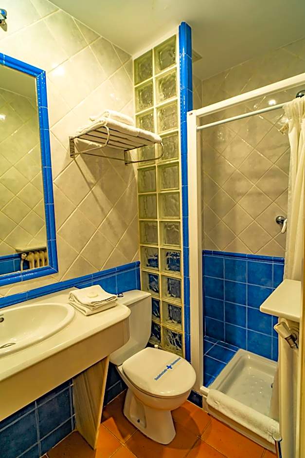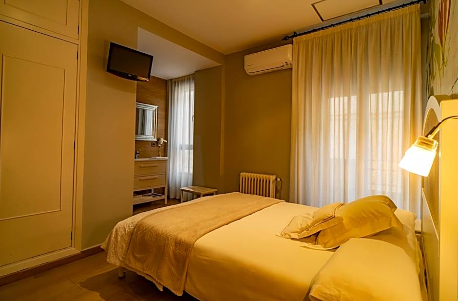 The hotel is a small, very friendly hotel at the bottom of a narrow street, with an extremely busy bar/cafeteria. As we had a car and needed to park in the public car park (10.50 euros with hotel arrangement) the hotel offered us an apartment (Jaca) right opposite the car park, which was very handy for luggage etc. There were good facilities in the apartment for those who might want to cook and the whole place was very clean. The bed was very comfortable although the bolster pillows weren't! The bathroom was a good size and had a hydromassage shower. Despite being on a main road, with a wedding party being dropped off outside the apartment at 0500, it was reasonably quiet. The apartment and hotel are only a short walk from the centre of the old town.