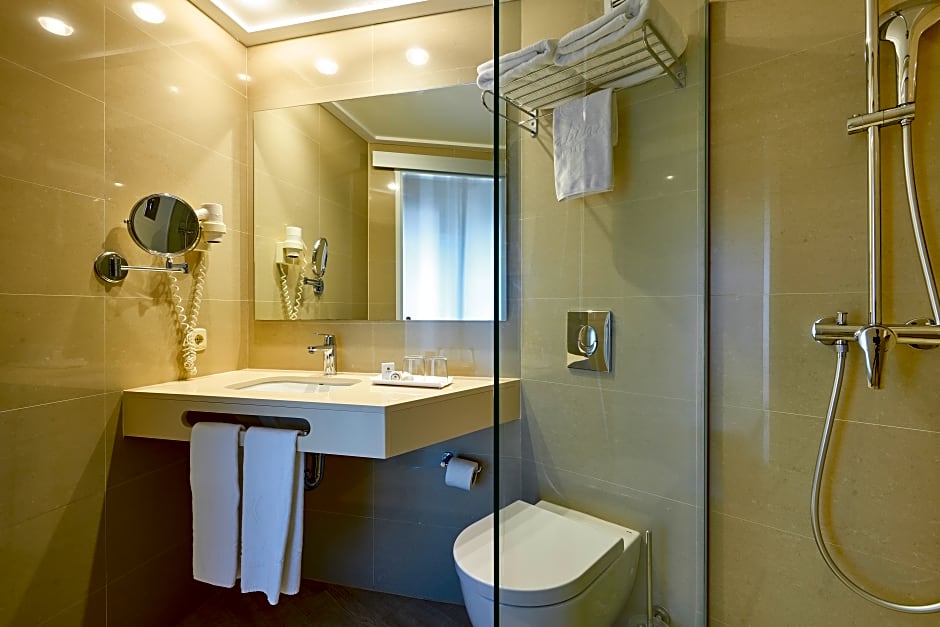Guests at Hotel Sabina can enjoy a range of leisure amenities during their stay. They can relax on the beach, soak up the sun on the sun deck, or take a dip in the outdoor swimming pool with a view. There is also an indoor swimming pool available for guests to use, which is heated and ideal for cooler seasons. The hotel also offers a Turkish/Steam Bath, Spa, and sauna for guests to unwind and rejuvenate.