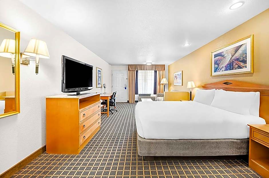 This simple, bright room has functional decor and includes a balcony with scenic views. A private bathroom is featured and a safe and TV.