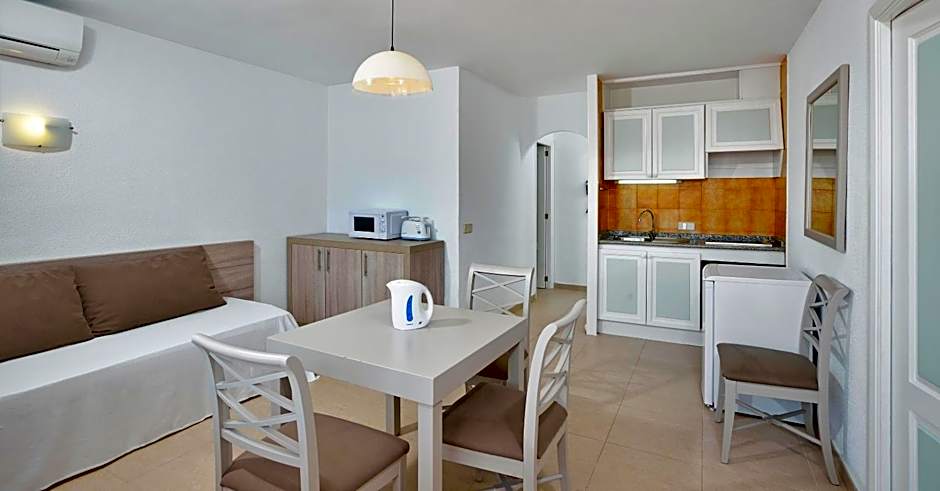 This comfortable air-conditioned apartment includes a double or twin bedroom and a living-dining room with a double sofa bed and TV. There is a well-equipped kitchenette, a bathroom and a private terrace with views of the pool, garden or the town.