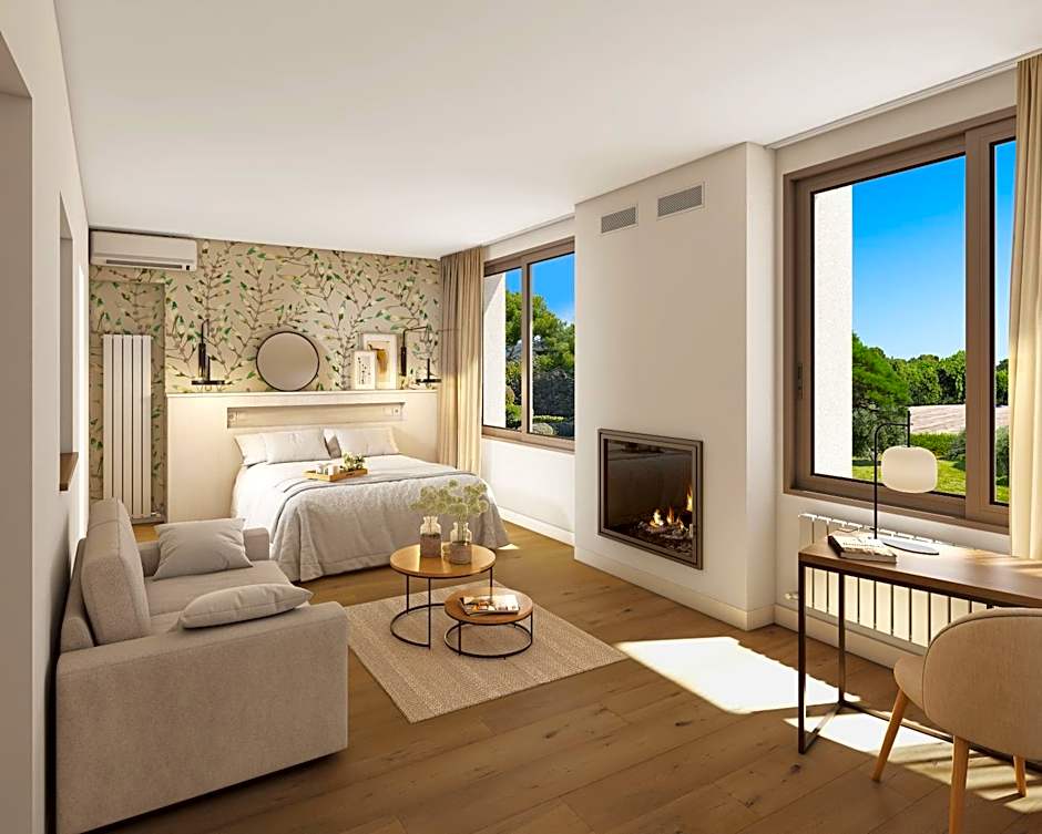 Guests will have a special experience as the triple room features a fireplace. Providing free toiletries and bathrobes, this triple room includes a private bathroom with a bath, a shower and a bidet. The air-conditioned triple room provides a flat-screen TV with streaming services, a mini-bar, a tea and coffee maker, a seating area as well as garden views. The unit offers 2 beds.