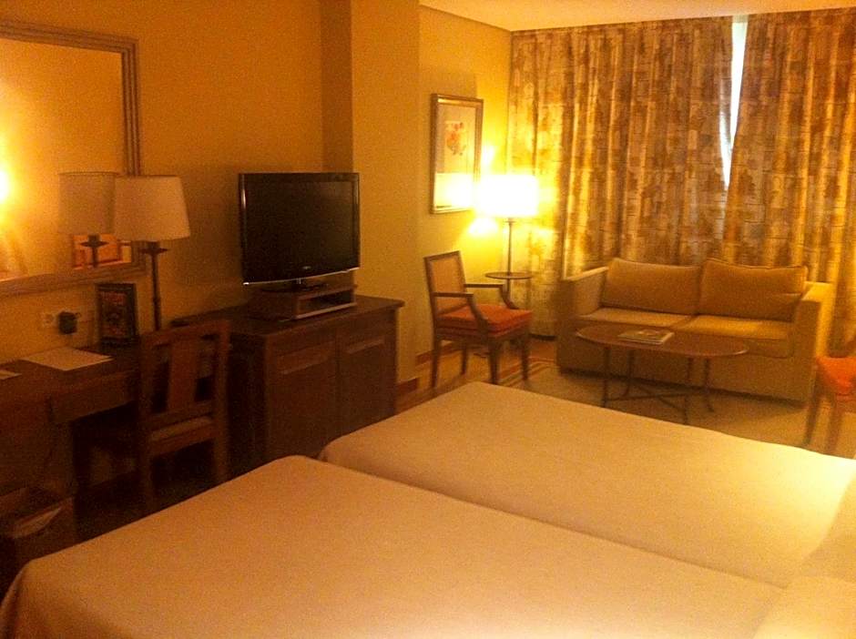 Excellent location with stunning views. I chose a Superior room, and it was worth it. We had a huge, well appointed room, with one of the best views I’ve ever seen; a panoramic view of Salamanca that is magical at night. Our bathroom was very big, and had everything you needed. Food was excellent, and staff friendly. The terrace was a lovely spot for cocktails before dinner. And the parking was free and plentiful. The hotel isn’t far from town, probably a 20 minute walk, but we got a cab, which reception called, to take us straight to the centre. Lovely compact city, with wonderful character.