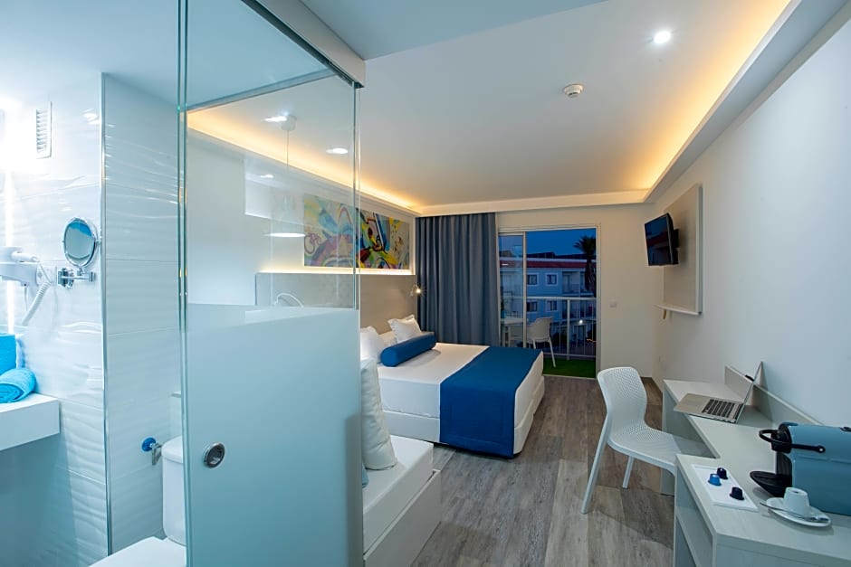 Feature-packed amenities include free parking and free Wi‑Fi, plus an outdoor swimming pool and a kids' pool for splashy days. On-site options include a restaurant and a bar, a terrace, sun deck, and garden for relaxing, free beach umbrellas and chairs, and soundproof rooms with balconies and bathtubs. Practical touches like a 24-hour front desk, elevator access, and wheelchair accessibility add to the convenience. For extra charges, there are a water park, water sports facilities on site, a business center, meeting/banquet facilities, and airport or shuttle services.