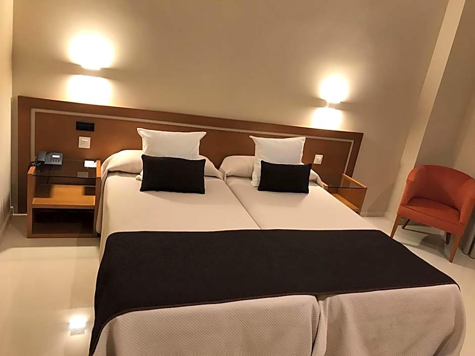 Hotel Santamarta offers Double or Twin Rooms, Double Rooms with Extra Bed for either 3 adults or 2 adults and 1 child, and Single Rooms. Smoking is not allowed in any room. Room sizes are 323 sqft for all room types, with various bed configurations including Twin beds and additional single beds for extra occupants. Occupancy ranges from 1 adult in a Single Room to 3 adults in a Double Room with an extra bed.
