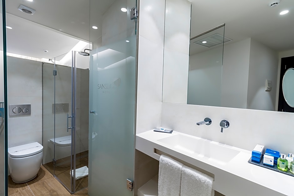 Offering free toiletries and bathrobes, this double room includes a private bathroom with a walk-in shower and a hairdryer. The spacious air-conditioned double room offers a flat-screen TV with streaming services, soundproof walls, a mini-bar, a coffee machine as well as sea views. The unit has 2 beds.