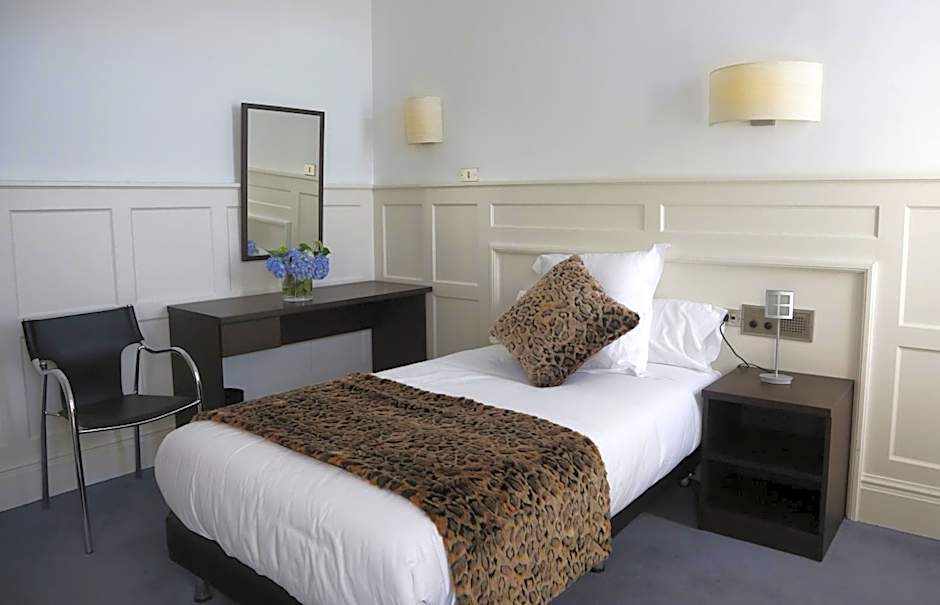 My room was a spacious twin room that was clean, tidy, and with a fridge, which was appreciated. The bed was comfortable, and I slept very well with the window open as there wasn't AC, although there was a fan. The shower was hot and powerful, and towels, etc. were clean and plenty. When I booked in, the women on reception was informative, helpful, and efficient at providing secure storage for my bicycle. Breakfast was lovely, tasty, and sustaining, and the staff member who served me was efficient and engaging. The location of the hotel is central for most things. I would stay here again.
