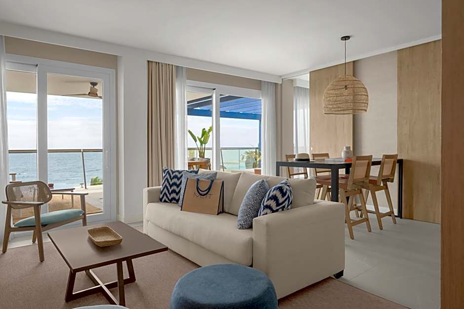 The Mezzanine Junior Suite features a separate living area, bedroom and terrace, providing a unique resort experience. Facing the stunning Mediterranean Sea, the 55 sqm Mezzanine Suites has a spacious living area and bathroom on the first level while the charming bedroom is located on the second level, offering ultimate comfort. The design is modern and elegant with Andalusian style accessories adding charm to the space