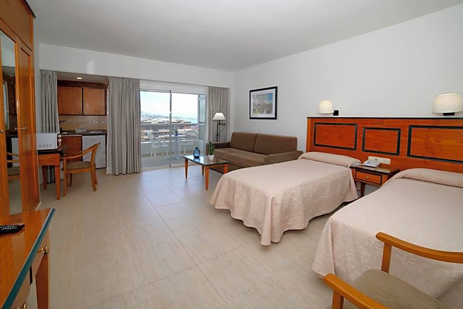 The Hotel Apartamentos Pyr Fuengirola offers a variety of room types, including Studios with Sea View, Superior Studios, and One-Bedroom Apartments. The rooms are all non-smoking and range in size from 431 sqft to 1399 sqft. The rooms can accommodate a varying number of adults and children, and the beds include options such as Twin beds, Sofa beds, and Double beds.