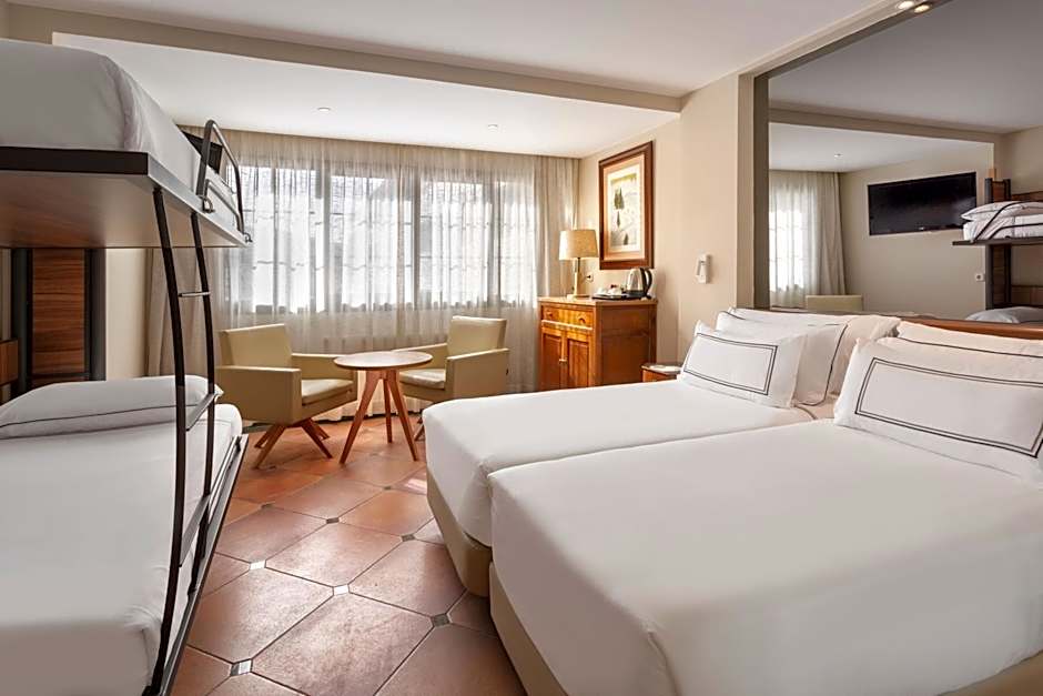 Offering free toiletries, this quadruple room includes a private bathroom with a walk-in shower, a bidet and a hairdryer. The quadruple room offers a mini-bar, a tea and coffee maker, a wardrobe, a safe deposit box and a flat-screen TV with cable channels. The unit offers 4 beds.