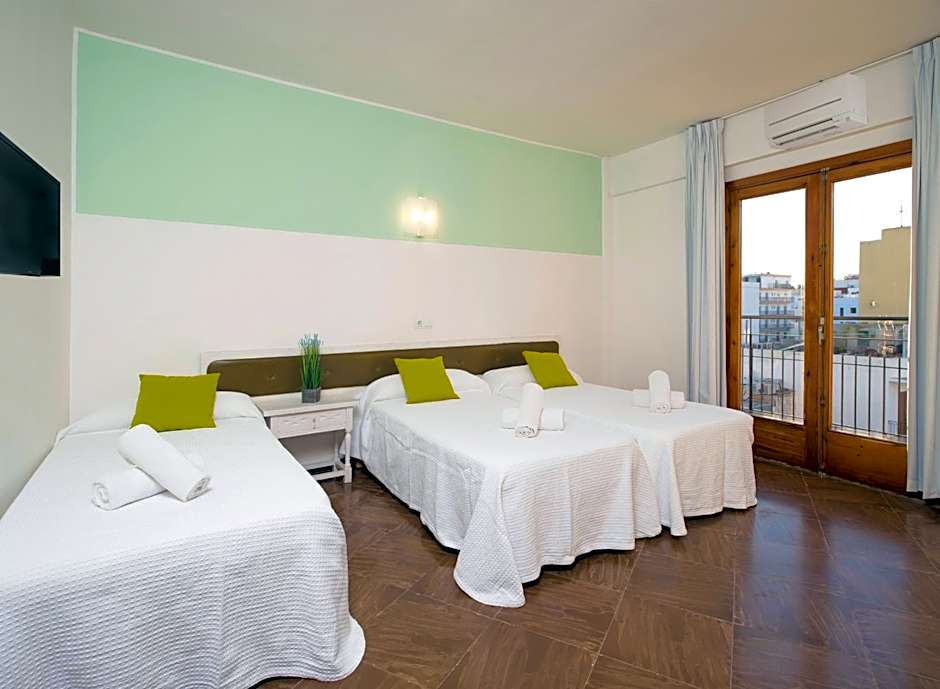 I liked that the hostal was more Spanish than other accommodations I've stayed in on Ibiza. The hostal has a bar which sells Spanish food and drinks at very reasonable prices. We enjoyed a beer here on the first night and breakfast on the last morning. The staff were friendly at the bar and at reception. The cleaner also happened to be on our floor on the day that we arrived and asked us if we needed anything and if our room was clean. We didn't have the room cleaned during our time there but we only stayed two nights. The hostal beds were more comfortable than other beds I slept on during this trip and I liked the solid wooden beds and the thick and comfortable mattresses. The receptionist told me that they would soon be refurbishing some of the hostal.. I hope they keep these beds. The room was large and the bathroom had a bidet. Again I hope they keep the bidet as you don't see them very often any more. There was Spanish and German TV but the English channels didn't work.. we can speak both German and Spanish so we didn't mind. The air conditioning also worked great. I wish that the remote was next to the bed rather than on the opposite wall. There was plenty of space in the room despite us having 3 beds. The balcony overlooked the street and the city and there was complimentary shampoo in the bathroom (enough for the 3 of us for 2 nights... which I noted that other people had complained about not having - we definitely had toiletries and I'm confident that reception would have given us more if we had needed any). There was also a handy machine downstairs selling cold drinks at a reasonable price (bottles were cheaper than cans at our other hotel in san antionio - we had to move accommodation during the week due to lack of availability)...