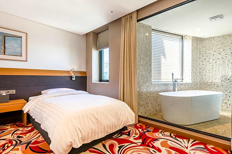 Offering fantastic sea views, this stylish, air-conditioned Junior Suite is distributed over 2 level and has a terrace with a hot tub. It has striking décor with slate and wood finishes. There is a small seating area, free Wi-Fi, a flat-screen TV and a hydromassage bath.