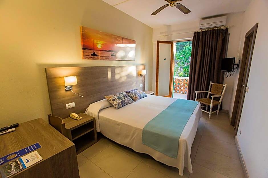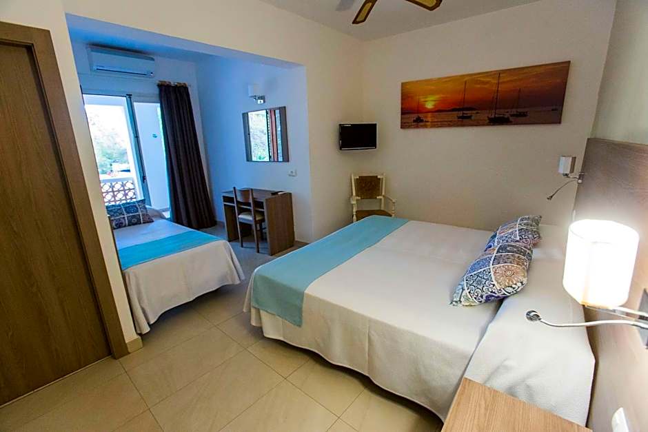 Set beside Ibiza’s Playa S’Estanyol, this beachfront escape blends sun-soaked charm with easygoing style. There’s a seasonally open outdoor pool designed for adults, featuring a shallow end for a relaxed dip after a day on the sand. Free live music adds a playful soundtrack, while complimentary beach umbrellas, chairs, and loungers line the shore. A tour desk helps chart local highlights, and the bar is ready for a refreshing nightcap.