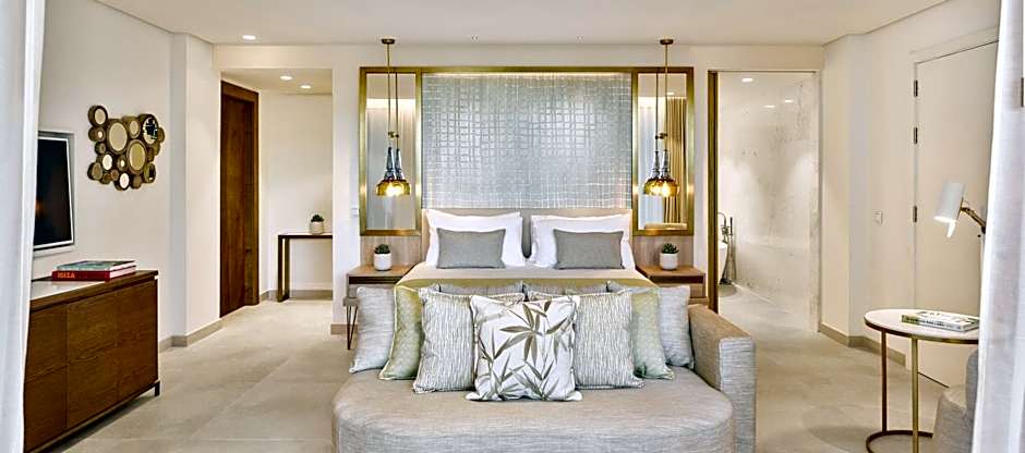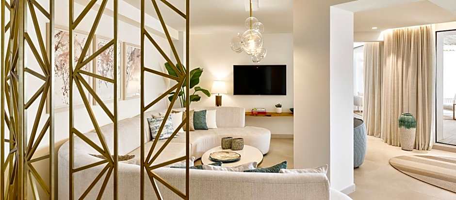 Offering a private garden and terrace with views over Talamanca Bay, this spacious suite has a separate living room with floor-to-ceiling windows.