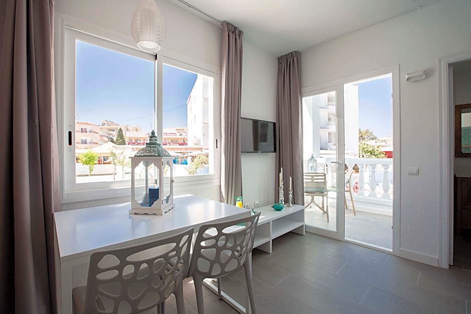 I liked the location of the hotel in San Antonio bay. It was really in front of and close to a marvelous beach. Easy to find parking. Also the room was big like a small apartment with a big bathroom, in front of sea balcony, living with kitchenette, and a nice bed. Pizzas were small but tasty and pool was really cool. Part of the staff was very friendly. Can spot the ladies of check in checkout and the guy serving drinks at the pool at lunch time.