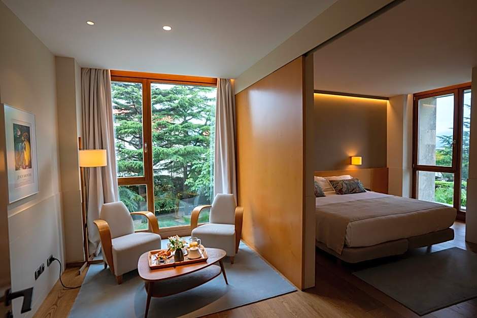 This spacious suite has a seating area, a king-size bed, a bathroom with a hydromassage bath, a flat-screen satellite TV, workdesk, mini-bar, alarm service, safety box, and free Wi Fi. This suite has garden views.