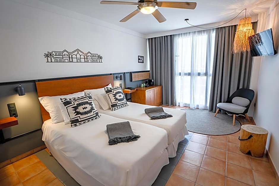 The Standard Double Rooms provide a spacious 26m2 setting with a comfortable stay by the sea. These rooms feature two single beds, air conditioning, safe deposit box (extra charge), LED lights, Satellite Television 32", telephone, hair dryer and Wi-Fi.