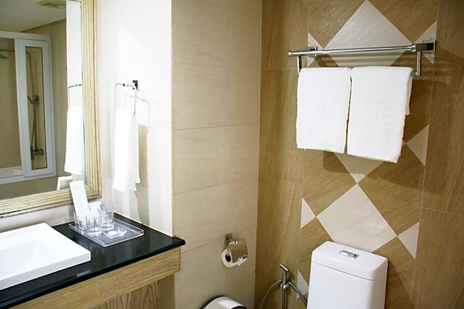 Mini suite was very large and comfortable. Beds great. Sadly it was not ideal for me as a disabled user as no walk in shower and the bath was very deep with fixed glass shower so did not make it idea to access without my carer. Free underground parking was ideal and secure.