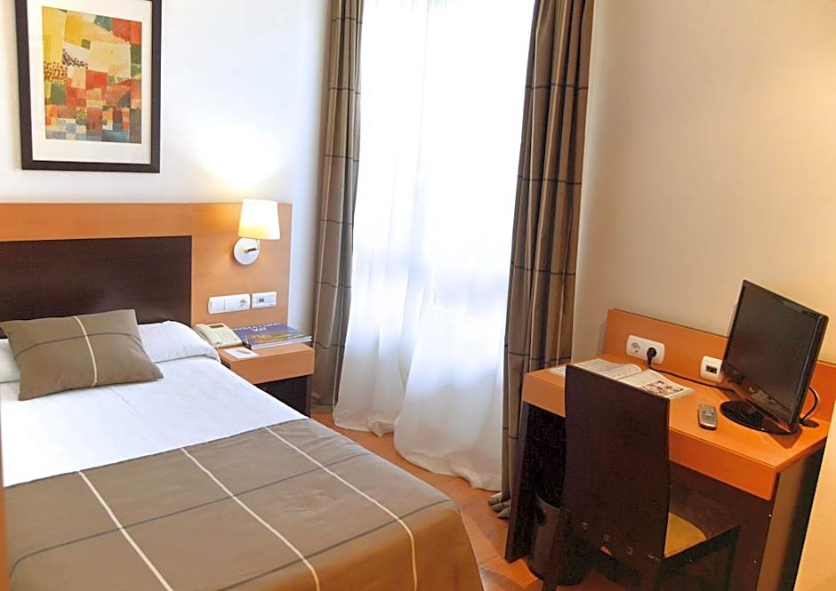 Modern hotel in a quiet residential area close to cathedral. Room clean and windows open which I particularly like Cafeteria ( kitchen opens 8pm) with reasonable choice. Try 1st ensalada ( Mmmm) on the menu ( I forgot the name) Lovely and helpful staff member, Merthe ( incorrect spelling) in cafeteria! 25 min walk from bus station. Moisturiser in bathroom ... a simple pleasure after the Camino