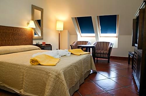 This modern and comfortable room features sloping ceilings, a mini-bar and a safe. It also has air conditioning, heating and a satellite TV. The bathroom comes with a double sink and a hairdryer. Free WiFi is available.