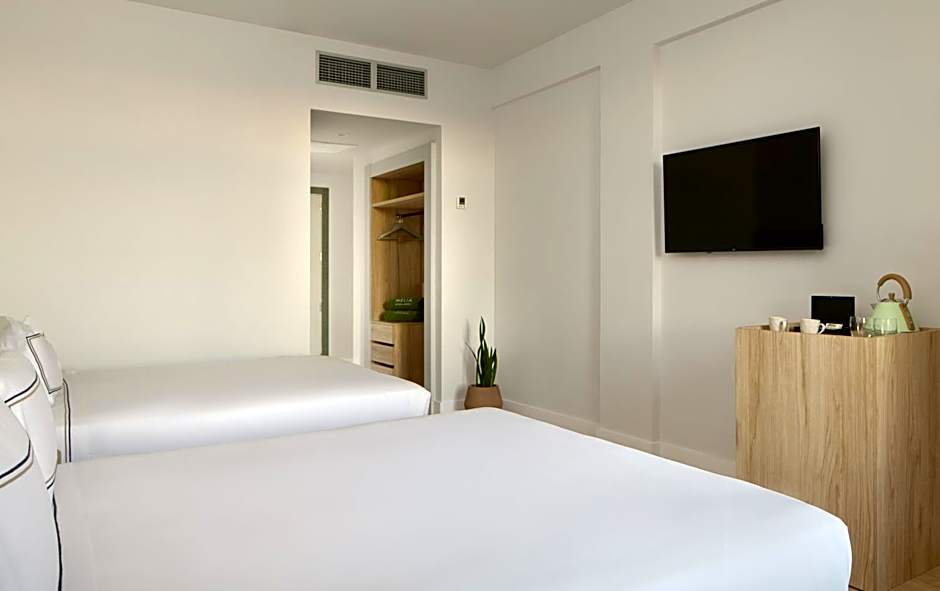 MELIA INDIVIDUAL GUEST ROOM is 161 square feet and includes a queen-size bed 150-154 width plus hairdryer, safe, and bathrobes.