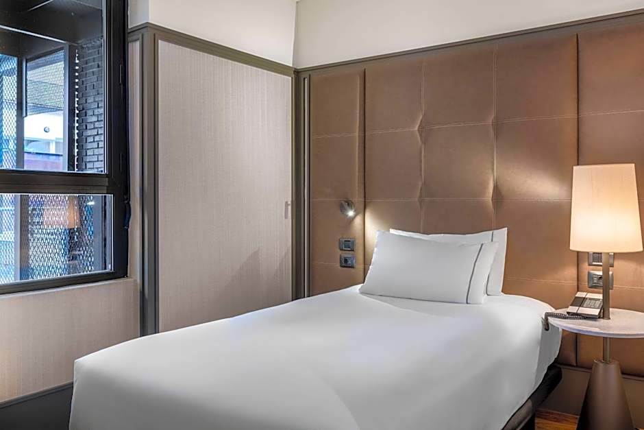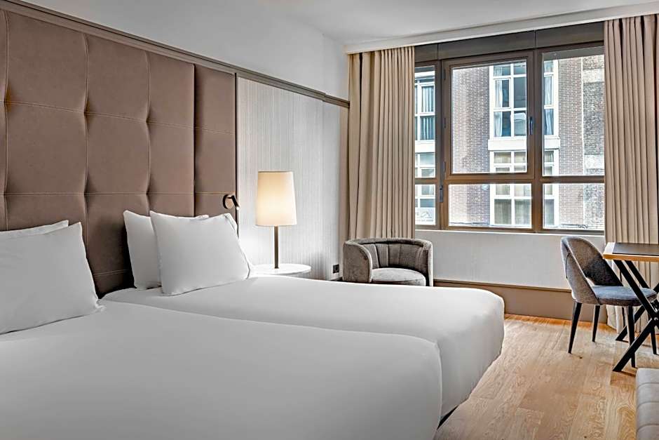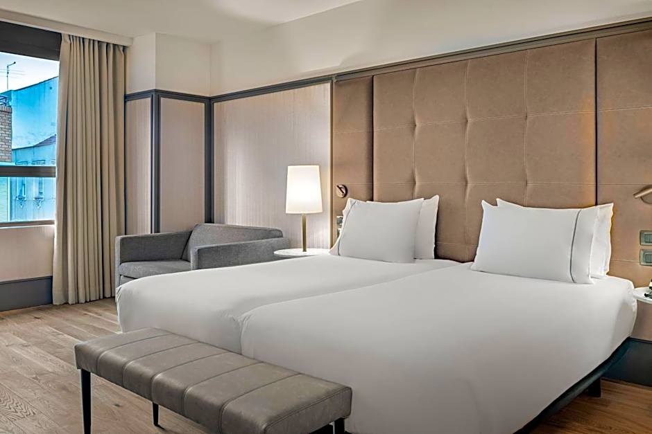 The AC Hotel Avenida de America by Marriott offers Single Rooms and Twin Rooms. The Single Rooms have a size of approximately 194 sqft and accommodate 1 adult with a Twin bed. Smoking is not allowed in these rooms. The Twin Rooms are larger, with a size of about 258 sqft, and accommodate 2 adults and 1 child with 2 Twin beds. Smoking is also not allowed in these rooms.
