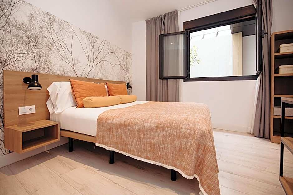 Flexibility is the name of the game at Aspasios Atocha. Cook up a storm in your fully-equipped kitchenette and savor your culinary creations on your private terrace, soaking up that golden Madrid sun. And after a long day filled with exploration and experiences, unwind in soundproofed tranquility that ensures a restful night’s sleep. Each apartment includes a mix of twin and double beds, providing plenty of cozy configurations for you and your fellow travelers, all with whimsical décor that captures the flavor of the city.
