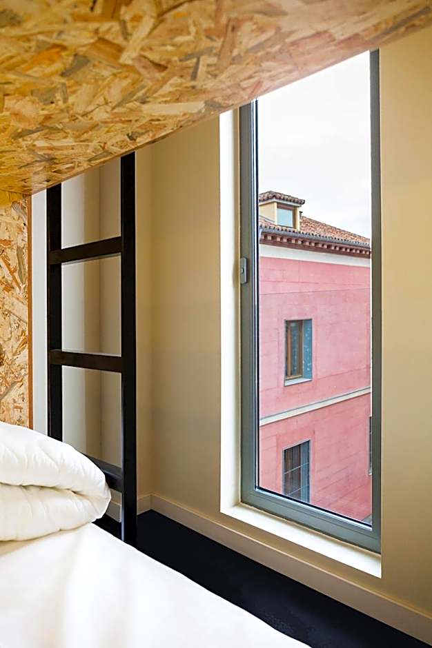 The hostel is very nice and full of every service: air conditioning and lockers in the room, toilet separated from the shower both located in the room, rooftop, small kitchen, restaurant and pub. The staff is young, super friendly and helpful. The location is in the cozy neighborhood of Malasana and only 15-20 minute walk from Puerta del Sol. Metro stations of Tribunal is just behind the corner and the area is well served by supermarkets. Definitely recommended!