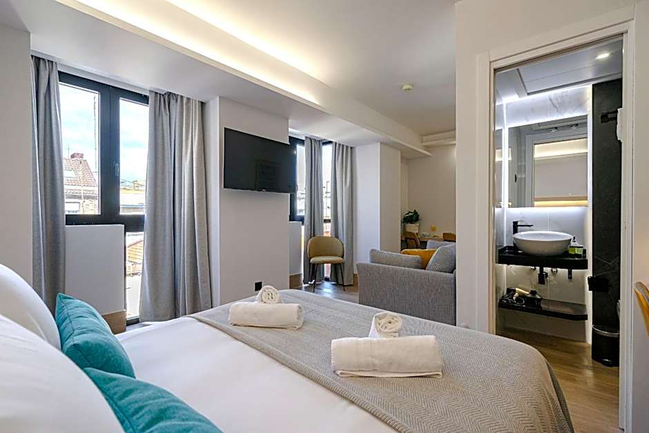 I loved the setting of the room and it really did feel at home there. The place was clean, very fournished to be able to cook independently and comfortably, the lighting was just perfect and we had 2 televisions. Although the room was an open space, the 'room' space was well separated from the 'living room'. The bed was really comfortable and the sofa too. There was the possibility to have an iron and ironing board. Check in was very smooth: Because of my very early landing time in Madrid, the hotel gave me all the information I needed to self check in and met my request to comfortably settle the payment of the room later on in the day. The personelle was incredibly kind and attentive, and flexible to meet our needs throughout the stay. it was lovely to wake up to a very smiley, welcoming and supporting receptionist! We were given a very friendly and complete brochure with suggestions of what to do and where to eat. The neighbourhood is extremely calm and peaceful, and in the surroundings you can find anything you need. Just a few minutes walk away there is one of the most beautiful parks of Madrid called Retiro. Super recommended!