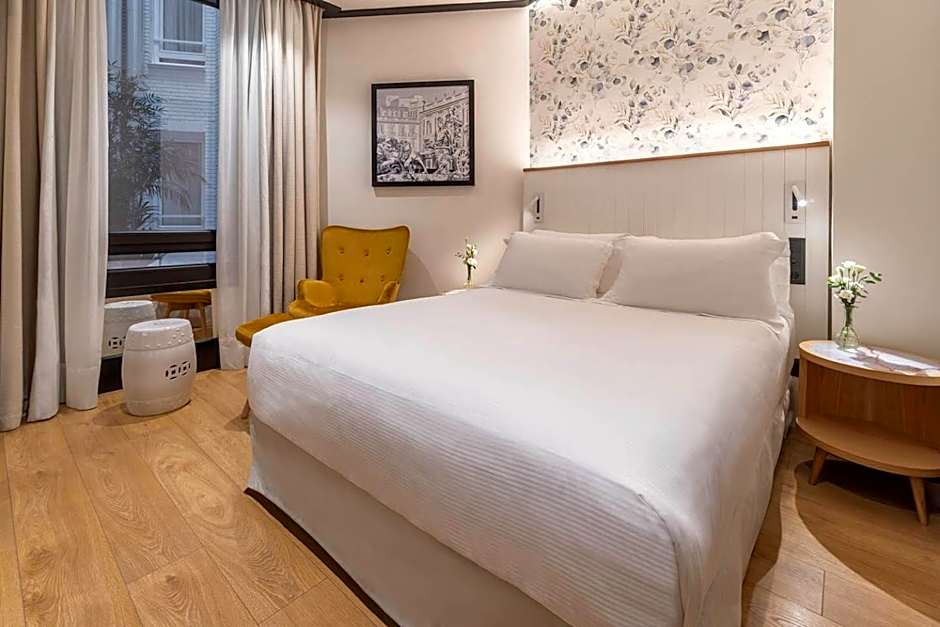 This double room has a soundproofing, air conditioning and mini-bar. The Basic Room has a bed measuring 53 in or 59 in.