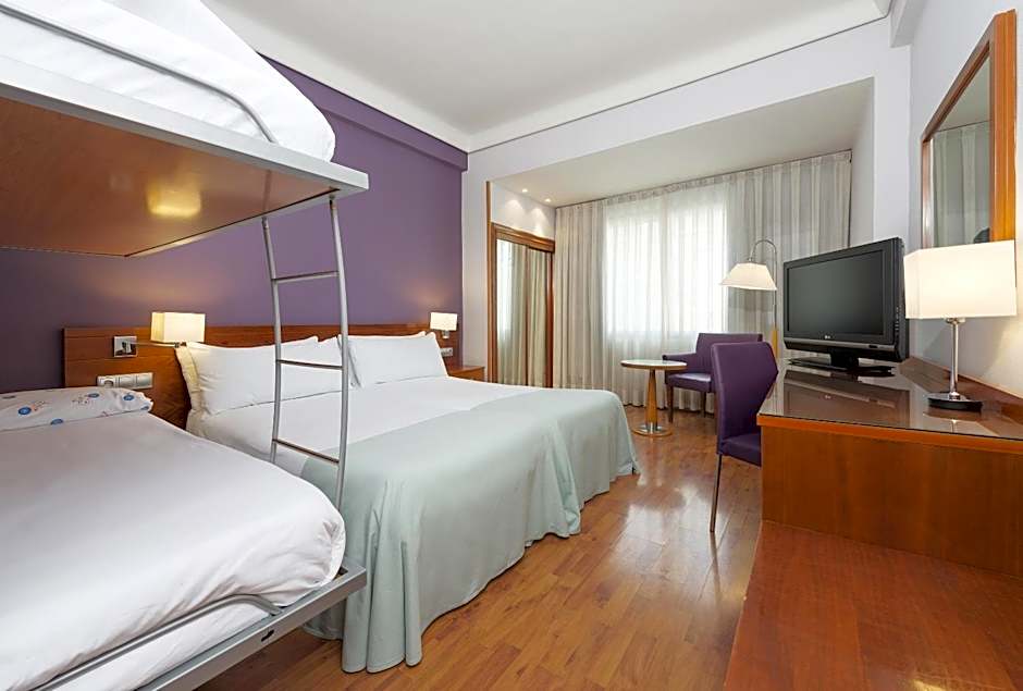This spacious double room offers views of Gran Vía. It is air conditioning/heating (depending on the season) and equipped with flat-screenTV and free Wi-Fi connection. Smoking and nonsmoking rooms are available.