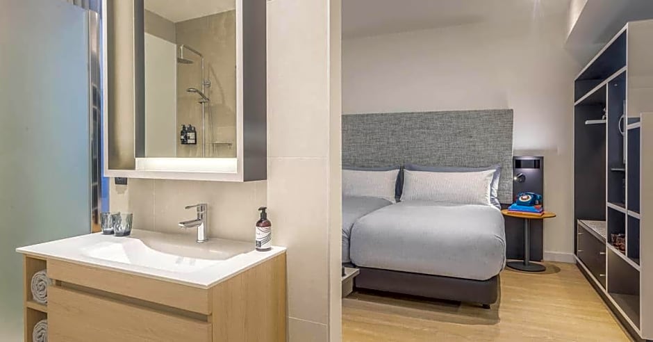The Innside Room City Rooftop View is 215 square feet and includes either a queen-size bed 150-154 width, a king-size bed 150-183 width, or a double bed 131-150 width plus desk, satellite tv , hairdryer, ironing set, and safe.