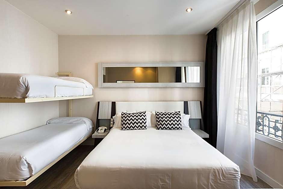 The Petit Palace Triball hotel offers a variety of rooms to accommodate different guest needs. These include Quadruple Rooms with City View and Quadruple Rooms (both accommodating 4 adults and 3 children), Double or Twin Rooms and Double Rooms with Terrace - Annex (both accommodating 2 adults and 1 child), and Quintuple Rooms and Sextuple Rooms (accommodating 5 or 6 adults and 4 children). Smoking is not allowed in any of the rooms. The rooms feature different bed sizes such as Twin, Double, Bunk, Queen, and TwinDouble.