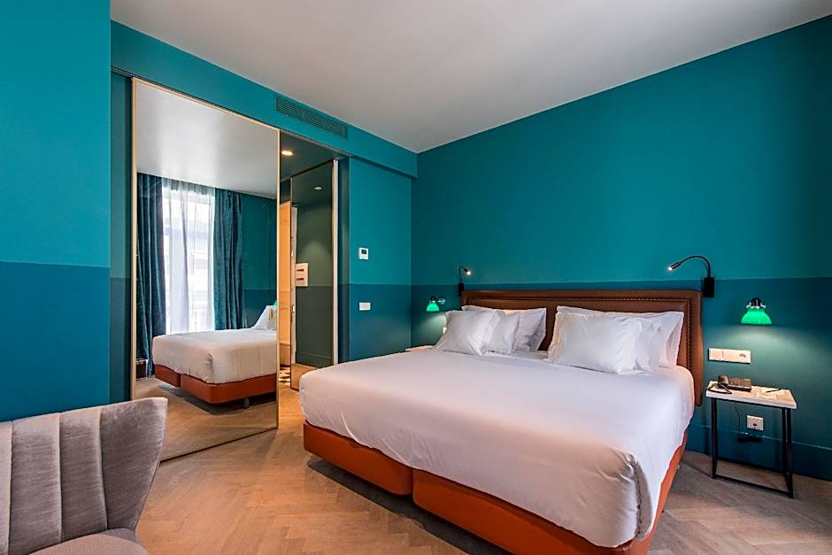 This room composed of 2 Double rooms and has views of Gran Vía with a common landing that connects both rooms and they are isolated from the rest of the rooms.