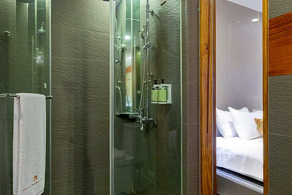 The double room provides air conditioning, a wardrobe, as well as a private bathroom featuring a shower and a hairdryer. Boasting a balcony, this double room also offers a safe deposit box, an electric kettle and a flat-screen TV.