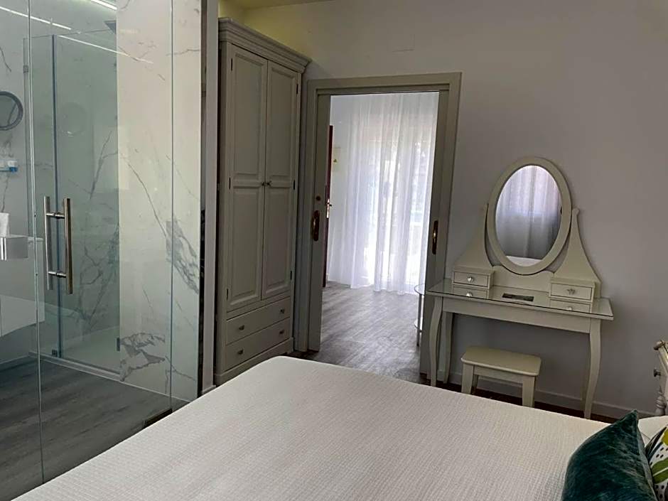 This spacious suite features a double bed and separate seating area with sofa and work desk. There is 1 TV and the private bathroom includes a hairdryer and make-up mirror. The room includes direct access to the garden and swimming pool.