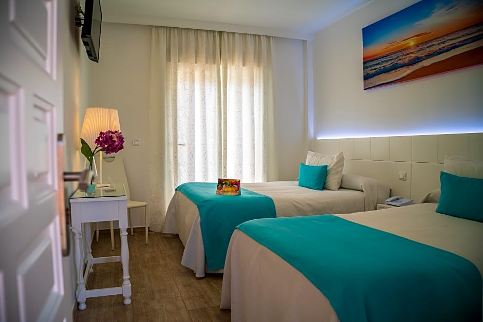 Hotel Romerito offers a variety of rooms with different occupancies and bed sizes. The rooms include Twin Rooms (161 sqft) accommodating 2 adults and 1 child with 2 Twin beds, Triple Rooms (161 sqft) accommodating 3 adults and 1 child with 3 Twin beds, Deluxe Family Rooms (161 sqft) accommodating 3 adults and 1 child with 1 Twin bed and 1 Double bed, Double or Twin Rooms (118 sqft) accommodating 2 adults and 1 child with 2 Twin beds and 1 Double bed, and Quadruple Rooms (161 sqft) accommodating 4 adults and 1 child with 4 Twin beds. Smoking is not allowed in any of the rooms.