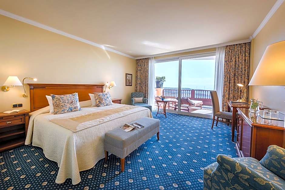 The hotel offers Double Rooms with Mountain View and Deluxe Double Rooms with Balcony and Sea View, accommodating 2 adults in a King size bed and covering 269 sqft and 452 sqft respectively. Additionally, there are Superior Suites and King Suites with Sea View, both non-smoking, with occupancy for 2 adults, offering larger space and multiple bed options, such as Double, Queen, and King size beds, and a sofa bed in the King Suite.
