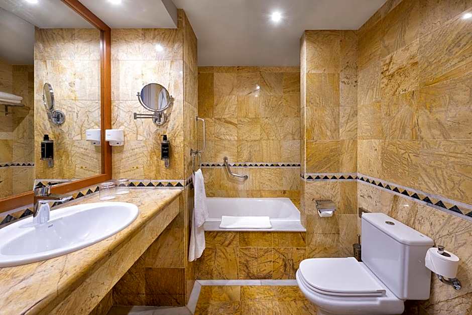 This spacious, air-conditioned room offers satellite TV, free Wi-Fi, a mini-bar and a private bathroom with a hairdryer. It has a private balcony with great views over the golf courses. Rooms for guests with reduced mobility are available. Please note that neither extra beds nor babycots can be added to this room type. Double bed only by request and subject to availability.