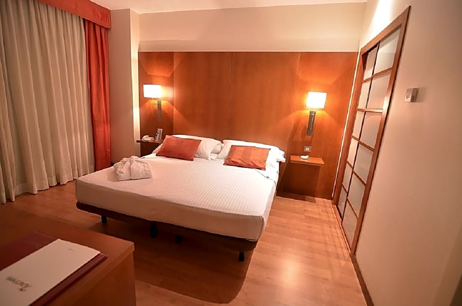 This room includes: - A welcome cocktail (1 drink per person), - A romantic dinner with drinks included - A bottle of cava in the room - A parking space - Free WiFi - Free access to the fitness club, swimming pool and chillout area. - Late check-out until 14:00 (upon request)