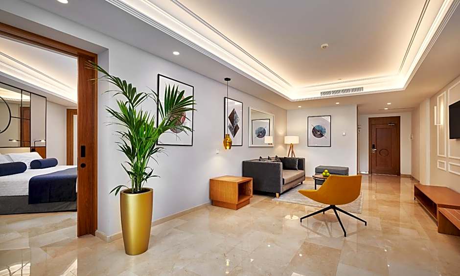 Offering a balcony, this air-conditioned suite features a lounge area with sofa and a satellite flat-screen TV. Suites include a safe and a kitchenette with microwave and mini-bar.