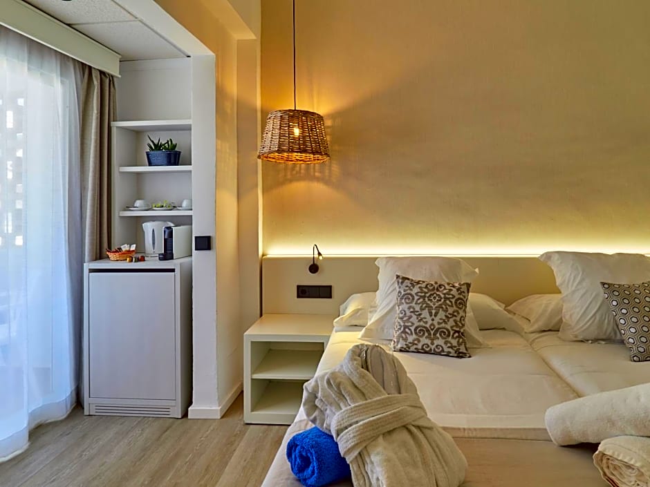 Paguera Treff Boutique Hotel sits right on the beachfront in Peguera, a stone’s throw from the town center and the lively coast. The setting makes mornings by the waves and sunset strolls easy, with a breezy coastal vibe that invites long days under the sun. The Treff Restaurant offers Mediterranean and International dishes in a modern, family-friendly ambiance, perfect for a relaxed lunch or a breezy dinner after a day by the sea.
