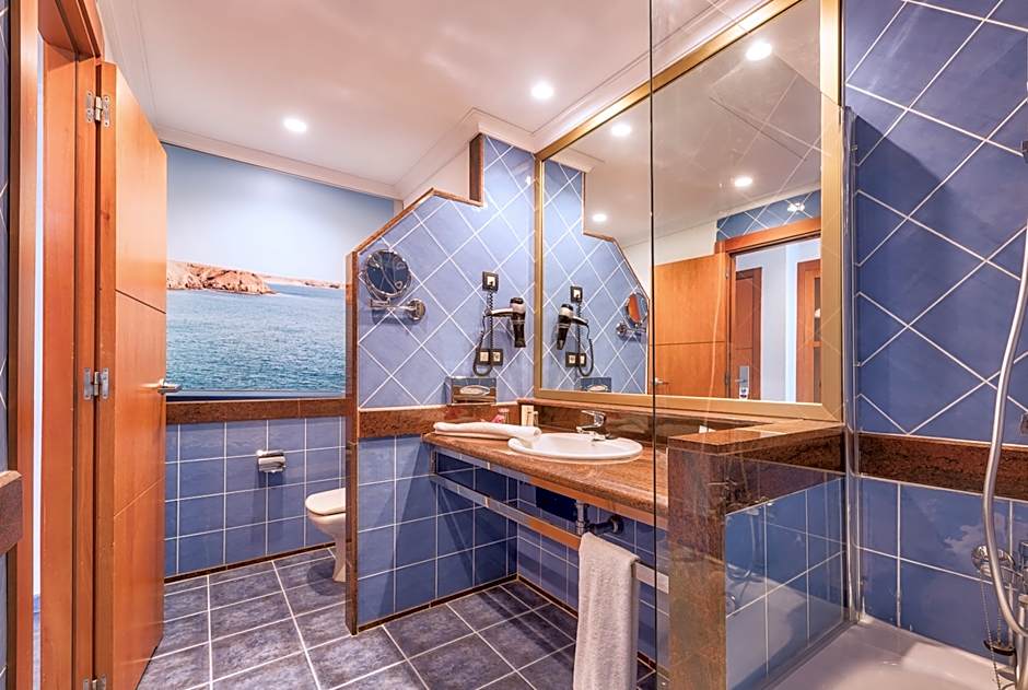 Double Sea View 2 adults + 1 child is 344 square feet and includes 2 single beds 80-130 width.
