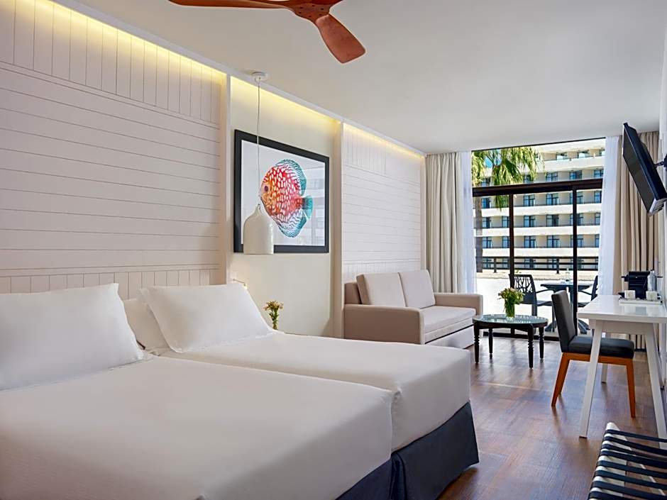 Featuring a balcony with pool view, this air-conditioned junior suite has a seating area with a sofa bed. It comes with 2 single beds, a flat-screen TV with international channels and a Nespresso coffee machine. A mini-bar is available upon request for a surcharge. The private bathroom has a bath tub, hairdryer and free toiletries.